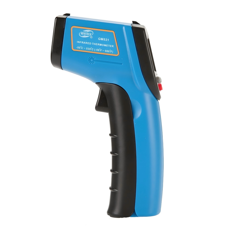 测量范围:-50~530 C(-58~986 F) 精确度:±1.5 C或±1.5% 分辨率:0.1 C / 0.1 F 物距比:12:1 发射率:0.10~1.00可调(0.95预设) 自助校准功能:±5 C 环境温度查看功能 最大值/最小值功能 C/ F 温度单位转换功能 数据保持显示&自动关机功能 定位激光开/关转换功能 LCD背光开/关转换功能 电源:2*1.5V AAA电池