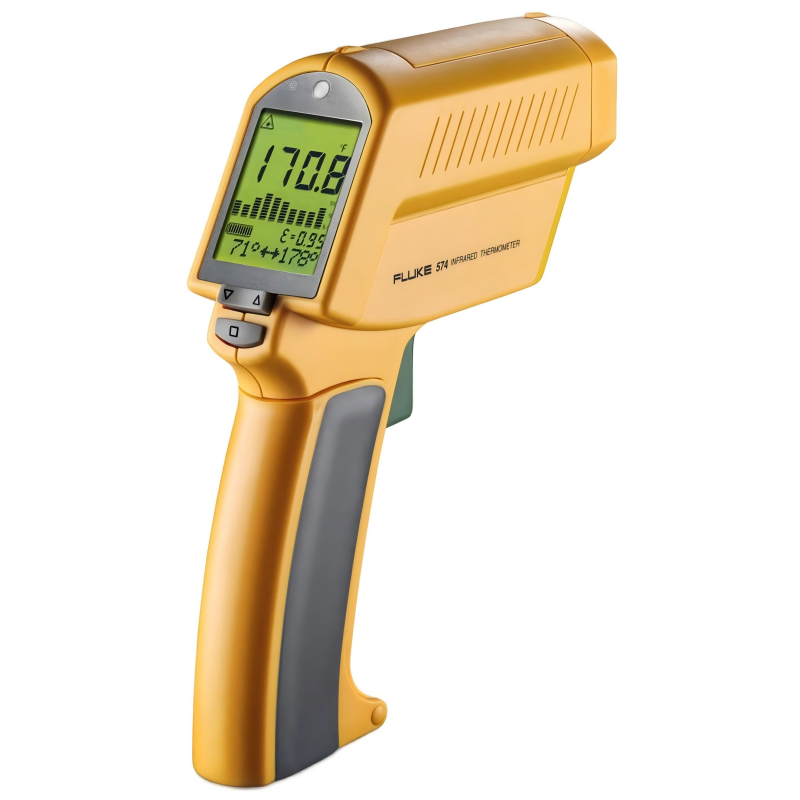 From close-up electrical connections, to distant room balancing checks, the Fluke 570 series can take IR temperature measurements with ease. Predictive maintenance professionals requiring analysis and documentation use the 574 model with 100-point data logging and included software for graphing and analysis for follow-up reporting and documentation.