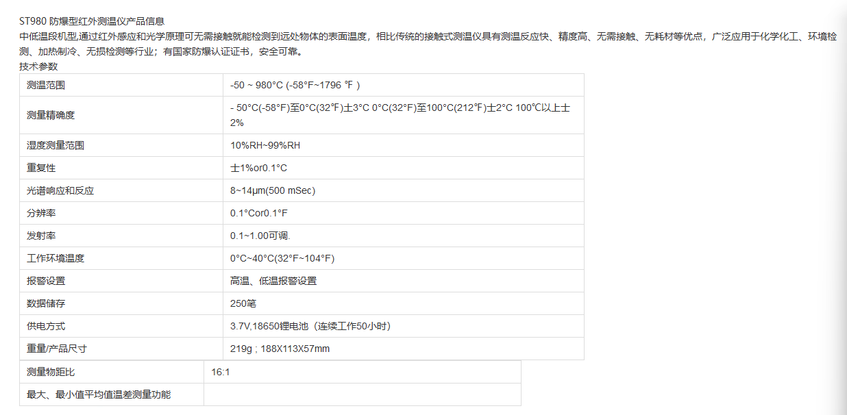ST-980 防爆测温仪
